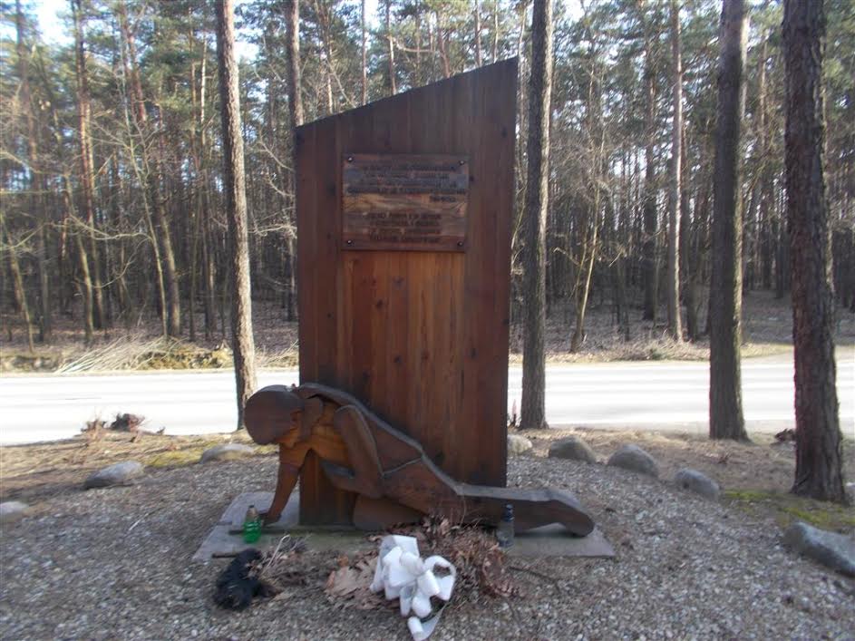 A skoro się zgadało… Las pod Tarnowem. Tu z kolei Niemcy mordowali Cyganów. Pomnik z drewna, z fragmentem wiersza Papuszy.: