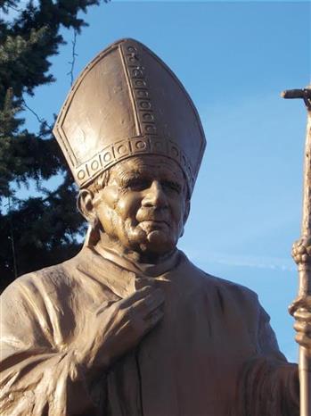 W ojczystej wiosce bł. Karoliny Kózkówny, w Wał-Rudzie, kolejna pomnikowa symulacja Jana Pawła II. Tym razem za model – bez cienia wątpliwości, proszę sprawdzić na filmie – posłużył Inczu-czuna, ojciec Winnetou. Też Wielki Wódz zresztą…: