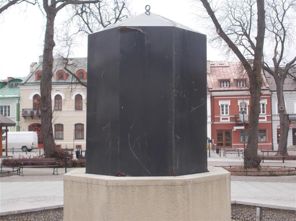 Akcent filmowy. Rynek w Krasnymstawie. Czarny obelisk. Monolit. Bardzo podobny pojawia się w filmie „Odyseja kosmiczna 2001” (1968) Stanley Kubicka. Tam sprawia m.in., że małpa zaczyna zdradzać pierwsze oznaki człowieczeństwa. A w Krasnymstawie?: