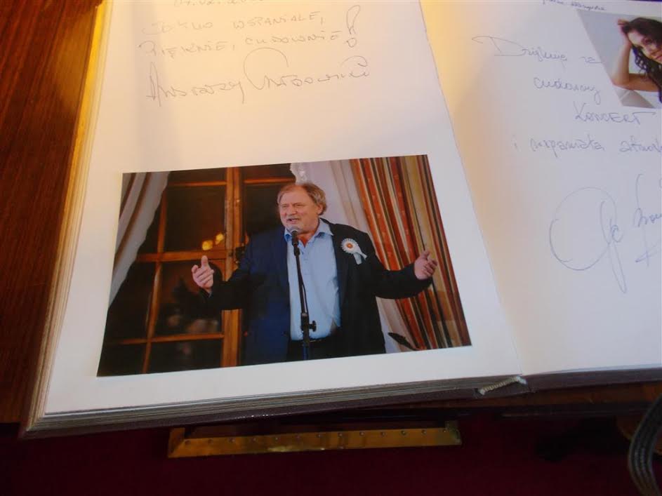 Jednak dzisiejsi włodarze Sieniawy nie odwiedzinami Kościuszki się szczycą, lecz wizytą tego pana – eksponują go przy wejściu, w księdze gości stale otwartej na tej samej stronie.: