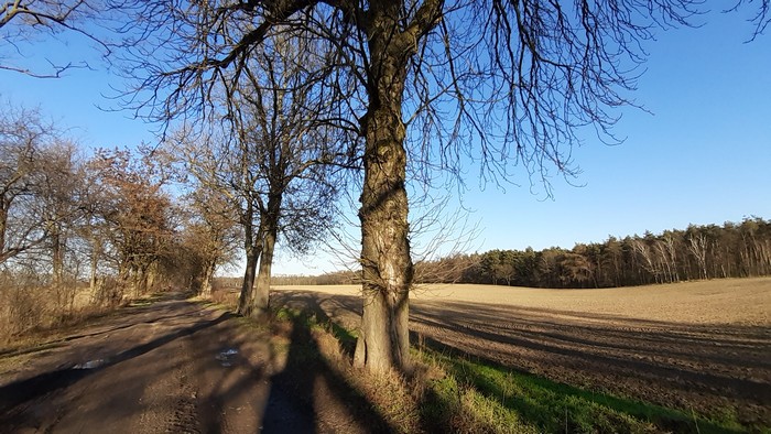 Na termometrze +10, więc i ja 10 km po alejach w okolicy Rogalina. Trzeba tu będzie wrocić, jak te kasztany zakwitną.: