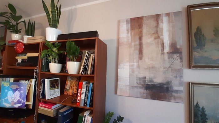 W markecie Leroy Merlin zaszedłem do działu dekoracji, żeby zerknąć na najnowsze tendencje w sztuce. I – proszę – znalazłem coś dla siebie. Pani, która pomagała nam przy automatycznej kasie, spytała, co ten obraz przedstawia. Sam nie byłem zdecydowany, bo nie byłem pewien, czy nie podaję go czasem do góry nogami. Ale w trakcie debaty doszliśmy do wspólnego wniosku, że musi to być piękna kobieta. Zaczeliśmy nawet dostrzegać oczy i zarys ust. Dawno już nie uczestniczyłem w tak porywającej dyskusji na temat sztuki współczesnej.: