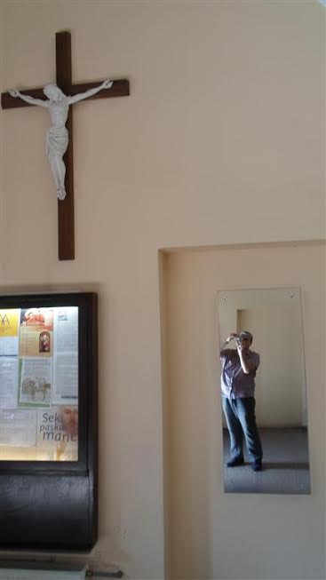 I reszta osobliwości. W kruchcie jednego z kościołów – lustro. Żeby poprawić strój czy raczej by się zlustrować?: