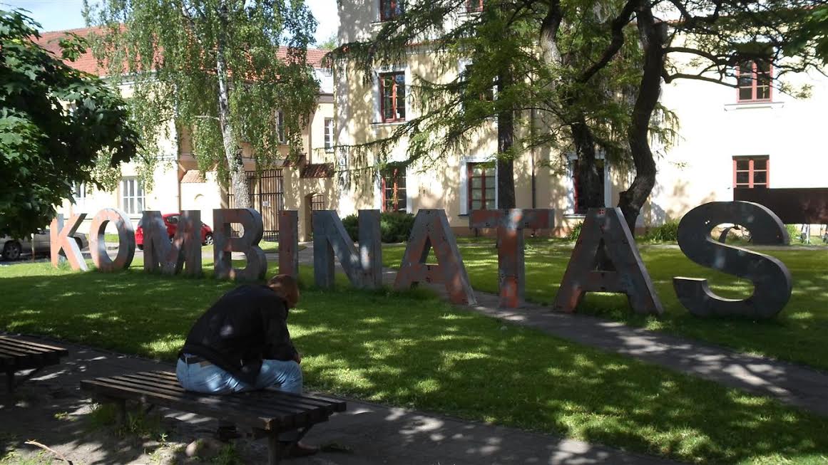 W jednym z miejskich parków ogromny napis „Kombinatas”. Ale wokół żadnego „kombinatu”! No, chyba że ten pan siedzi i kombinuje. Na takiego zresztą wyglądał.: