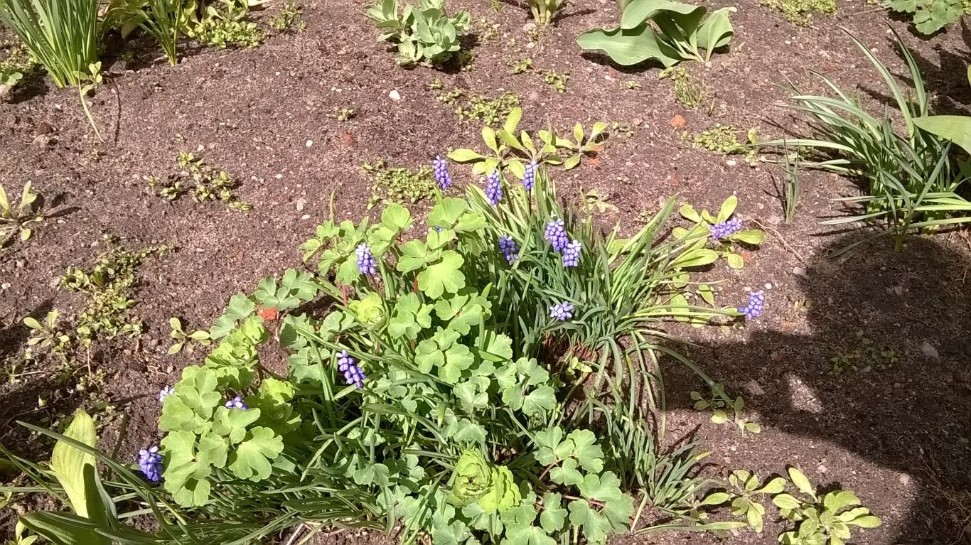 Drobiazgi. Zielenina na jakimś klombie. Tej wiosny – jak na razie – rzadkość.: