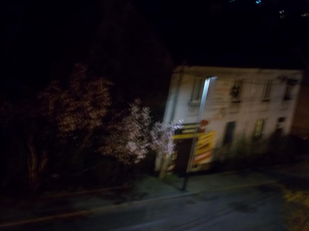 Wieczorem z okna hotelu w Krakowie chciałem pstryknąć kwitnącą jabłoń, a i to się nie udało.: