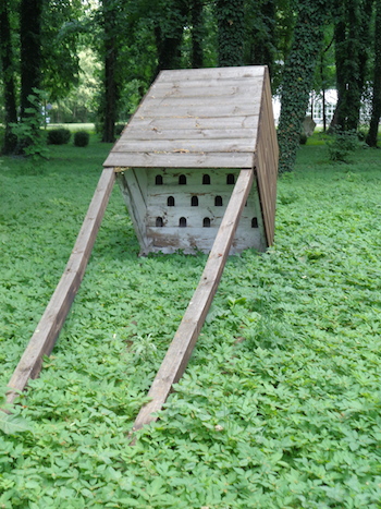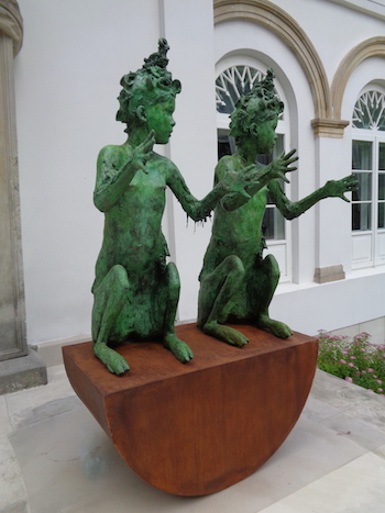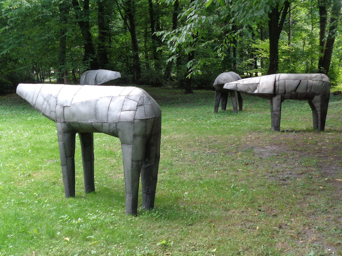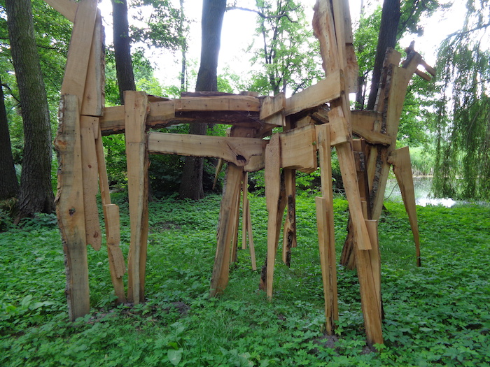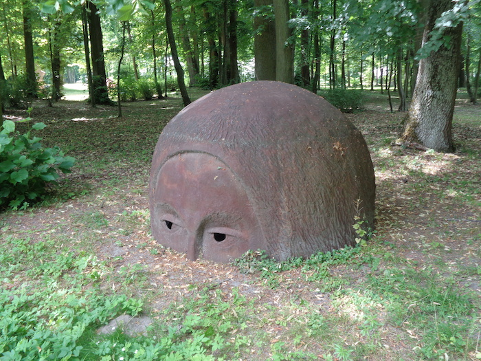 Niedawne zaszłości. Raz jeszcze Centrum Rzeźby w Orońsku. Zwracam uwagę na te dwa zielone bliźniaki – mam nawet własną koncepcję, kogo one artystycznie oddają. W każdym razie z parku wyszliśmy wstrząśnięci i zmieszani.: