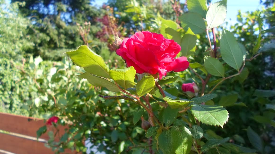 To są te dni. Pogoda do łażenia wręcz idealna. Najwyżej + 20, lekki wietrzyk, słoneczko. Bo przez resztę roku same przegięcia: raz w jedną, raz w drugą stronę. W każdym razie kwitnie wszystko, jak leci. Róże.: