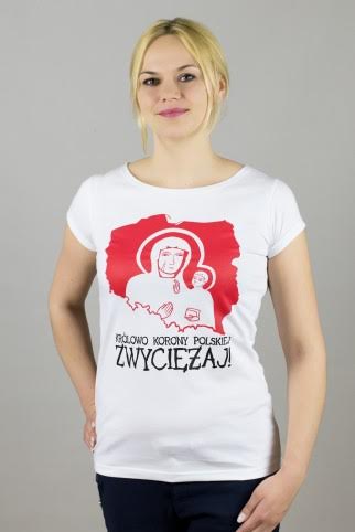 Fronda.pl reklamuje odzież katolicką. Bardzo interesujące. Choć jak się taki T-shirt przepoci, pomnie, poplami lodami… Ciekawe, czy podobny wizerunek jest też z tyłu. I czy wtedy koszulka jest droższa.: