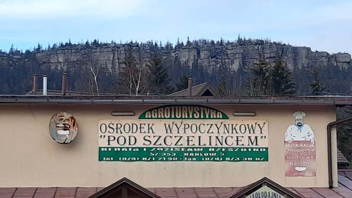 Szczeliniec widziany z Karłowa. Wrocławianie pozdrawiają się: „Do następnego weekendu!”: