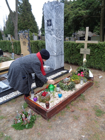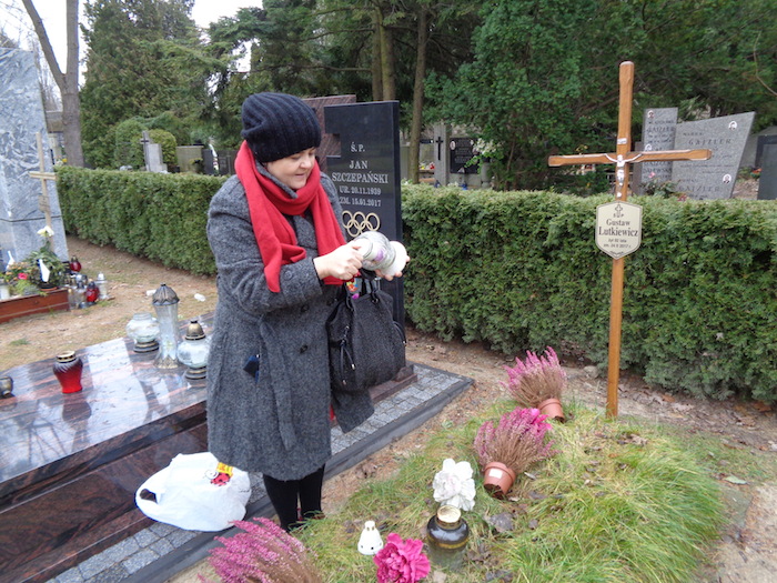 Na Wojskowych Powązkach sporo nowych grobów w sferach artystycznych. Dorota zapaliła świeczkę pani Szaflarskiej i panu Lutkiewiczowi.: