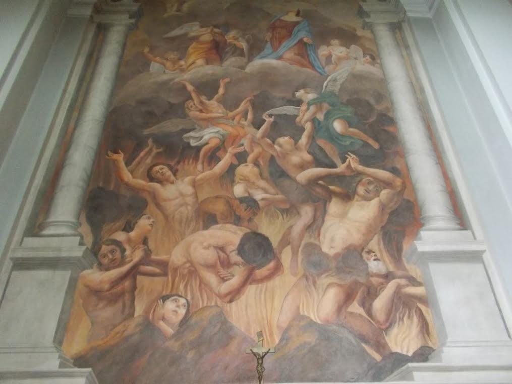 W kościele w Węgrowie malowniczy obraz piekła. Całkiem interesujące towarzystwo się nam szykuje.: