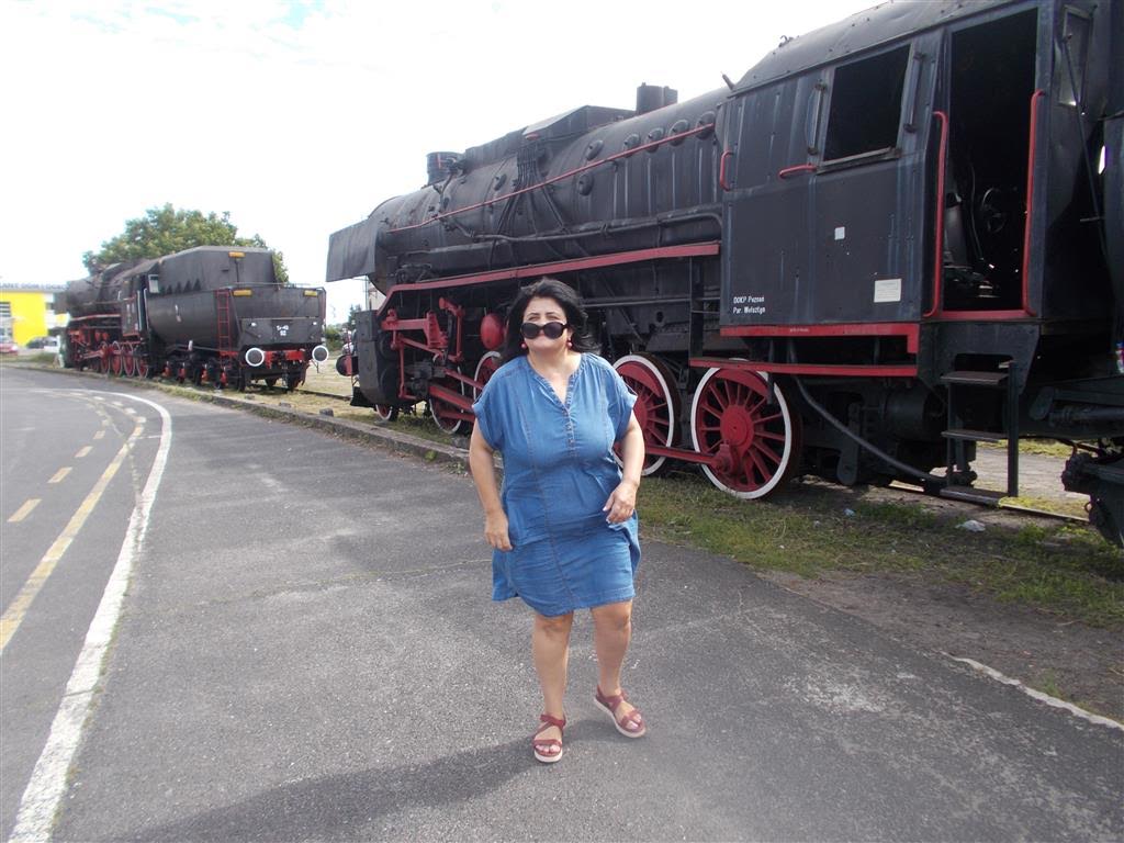 Dorota (na pierwszym planie) i lokomotywa.: