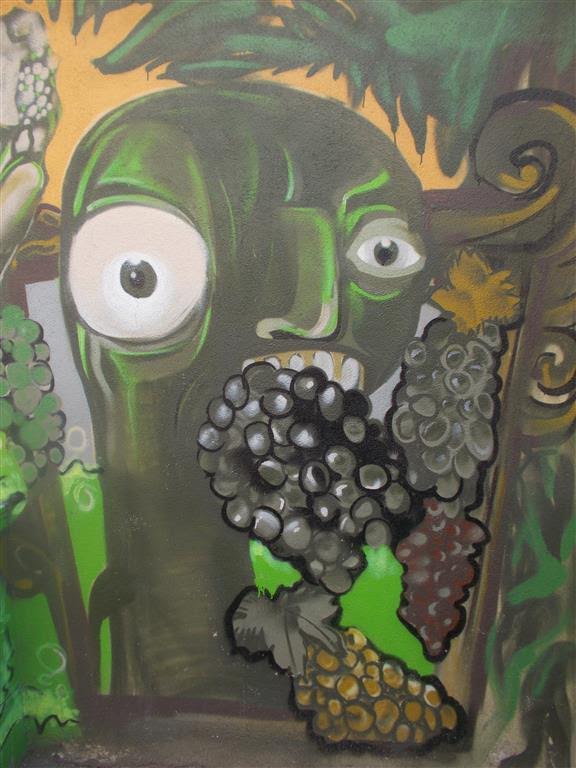 Mural. Ale faceci z takimi mordami spożywają zazwyczaj winogrona już przetworzone.:
