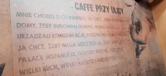 W bok od Piotrkowskiej – nowa pizzeria i nowa kawiarnia z cytatem z „Ziemi obiecanej”.: